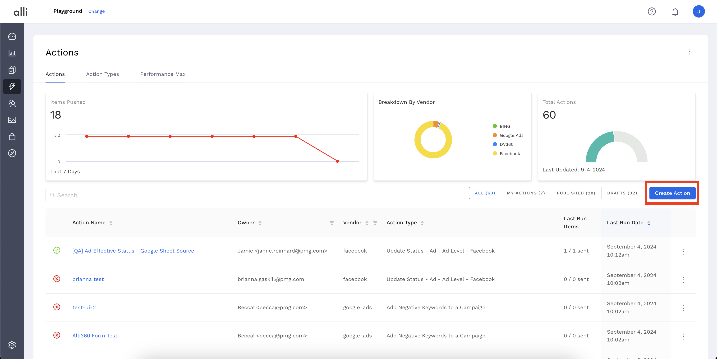 Go to Alli Actions then select Create Action.