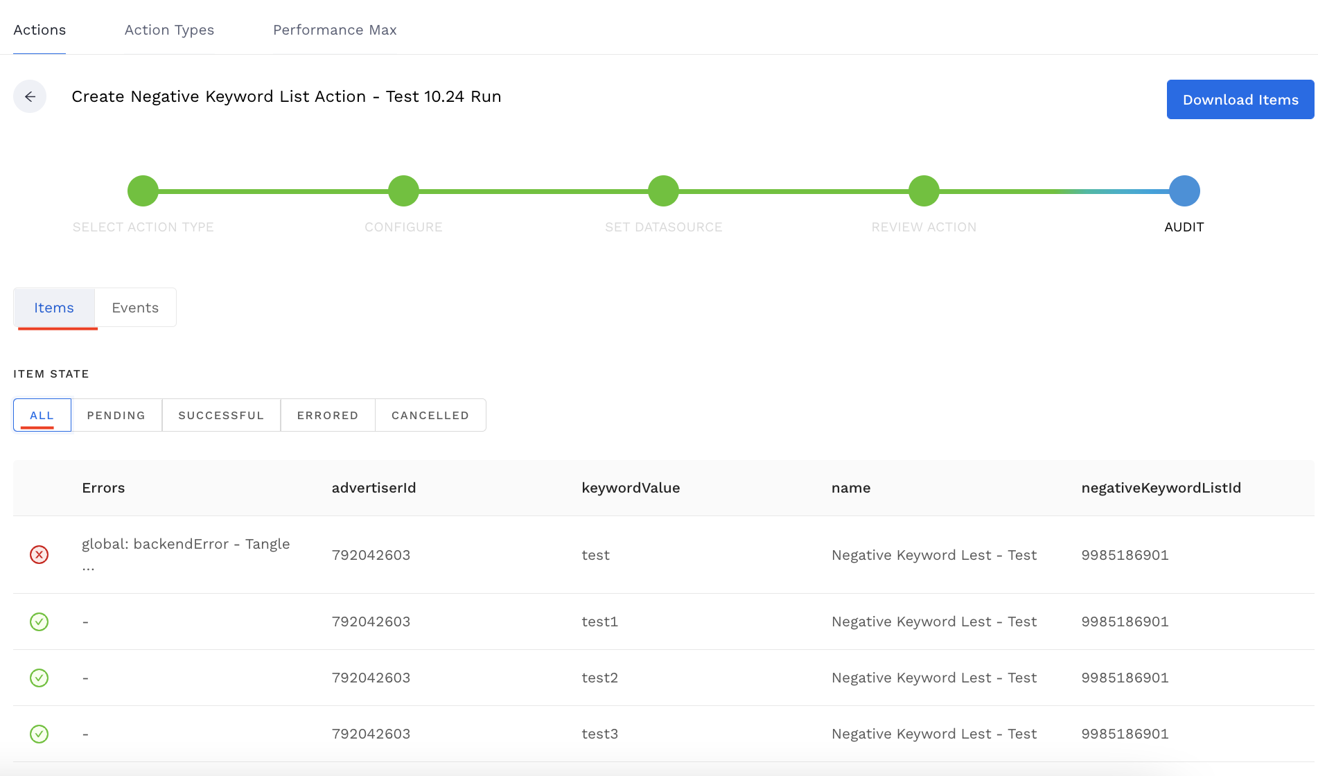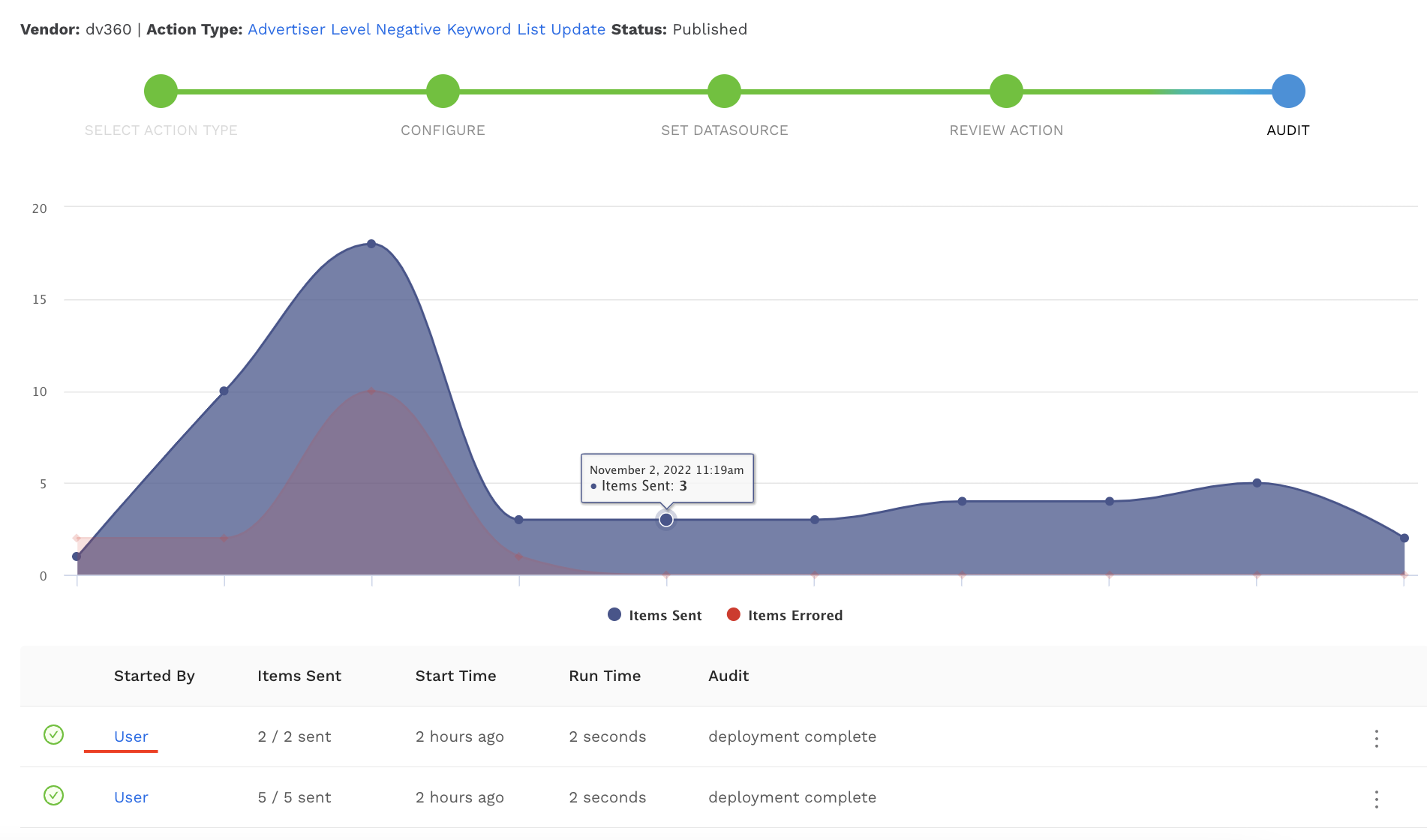We recommend always checking on your action after clicking run now. Navigate back to your action, to the Audit page. Refer to the How-To: QA Your Action Runs documentation for further details