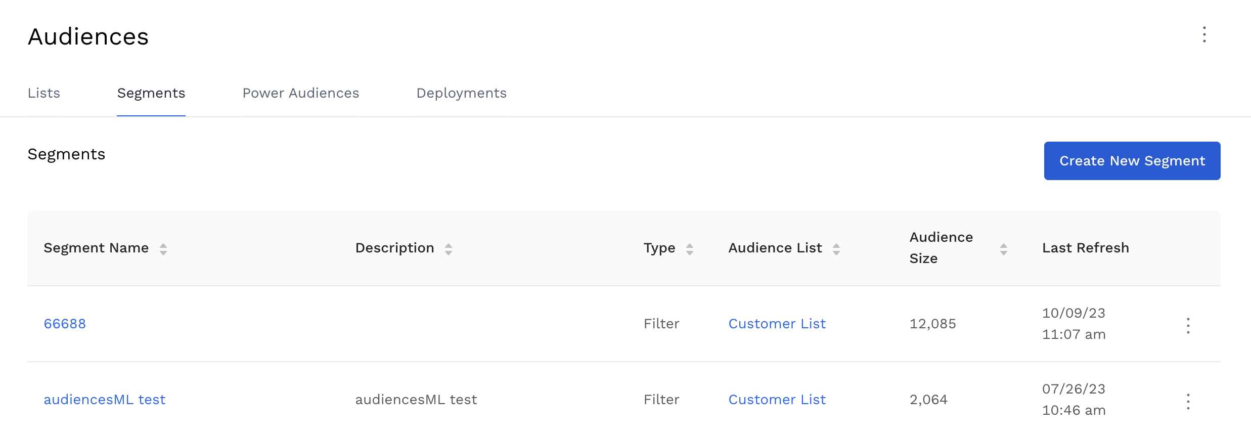 Navigate to ‘Segments’ in Alli Audiences and click ‘Create New Segment’.