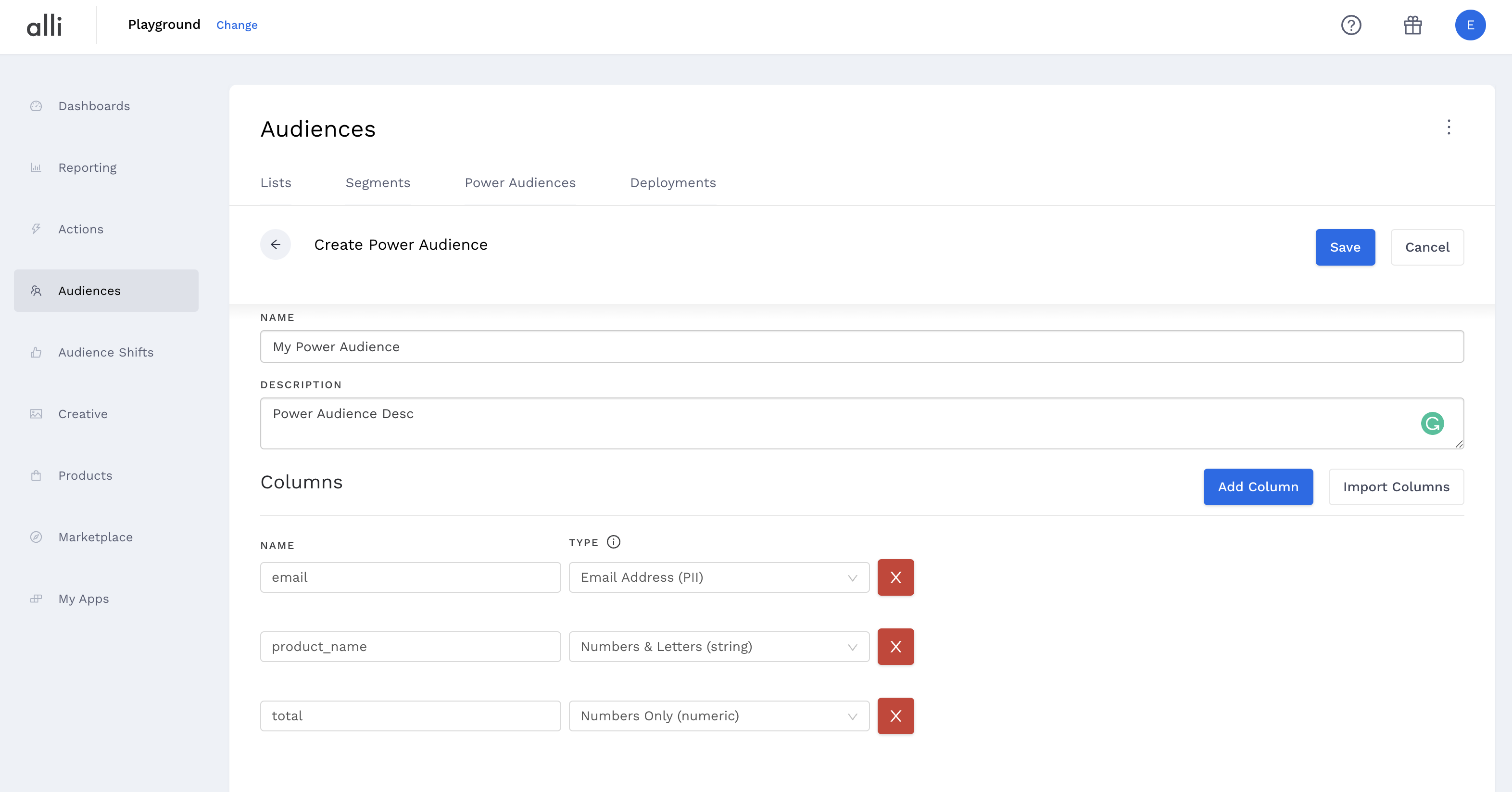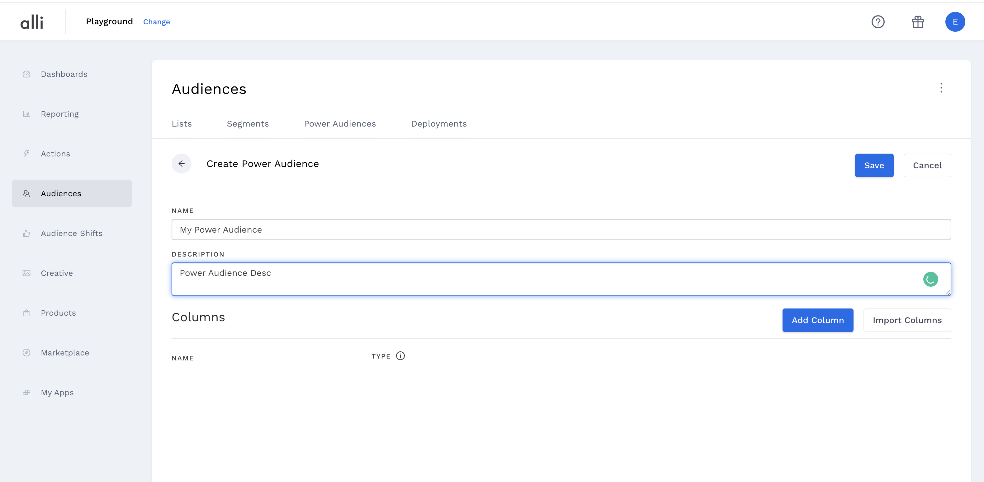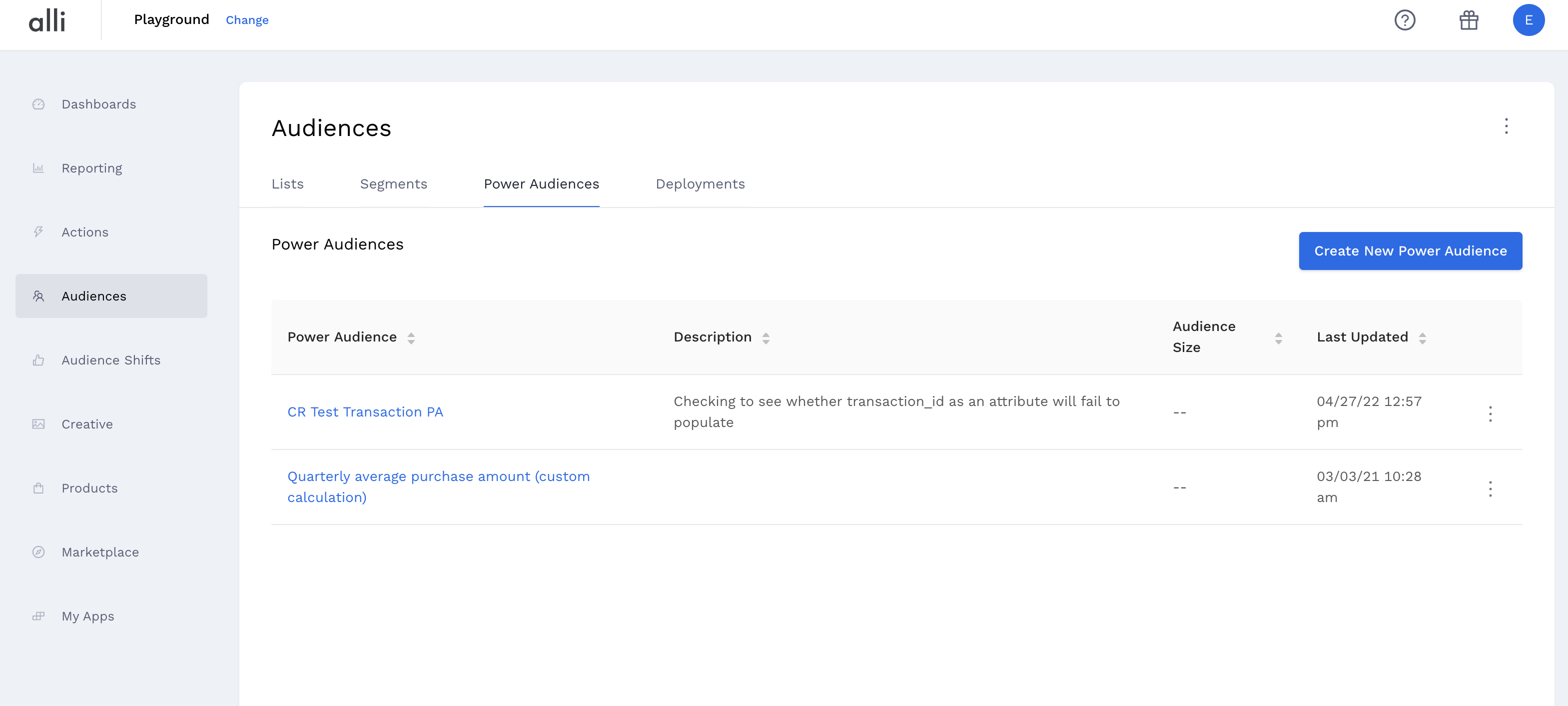 Click the “Create New Power Audience” button and enter a name and description for your power audience
