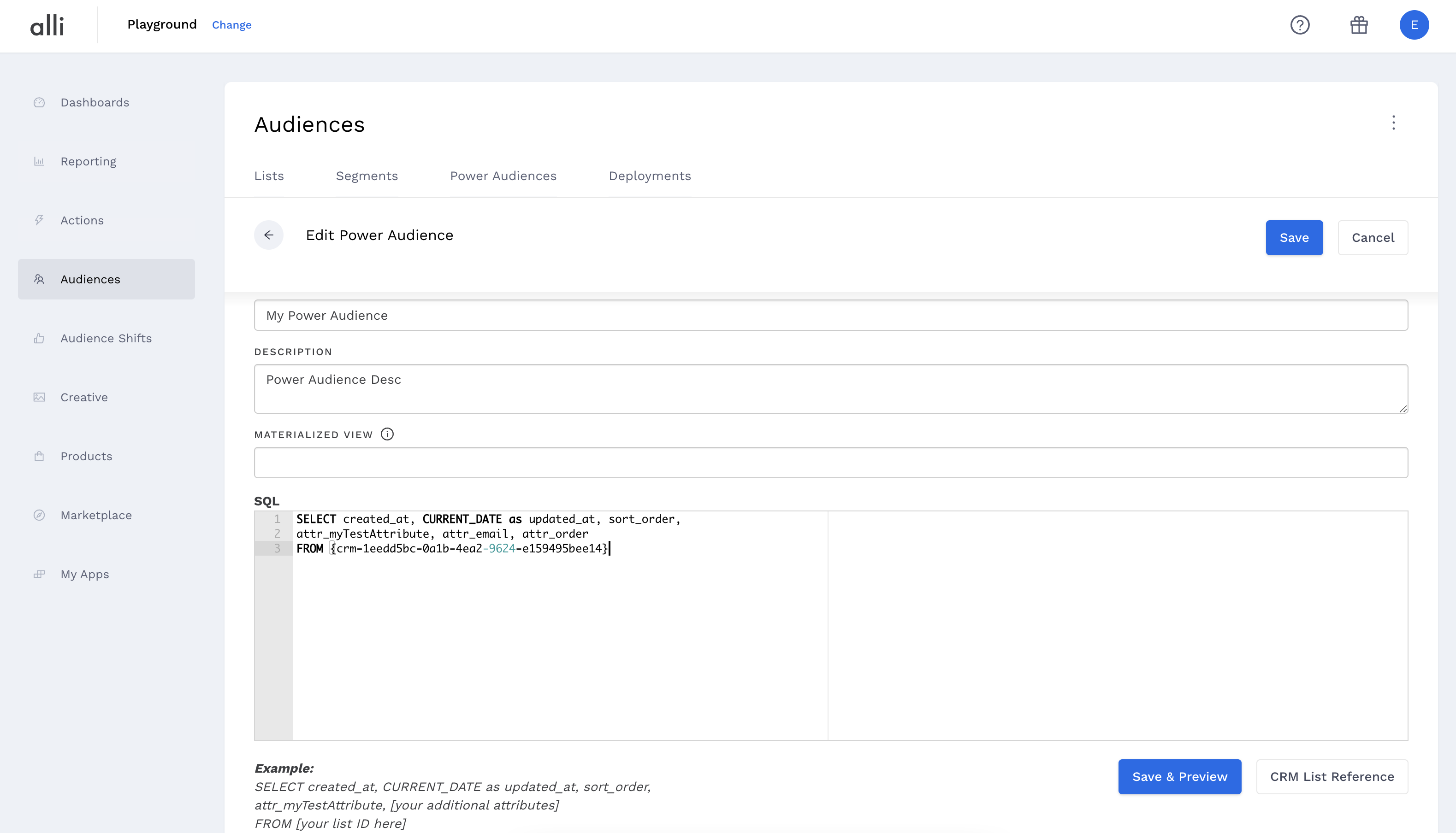 The power in Power Audiences is the ability to join two lists from the Lists section using SQL.