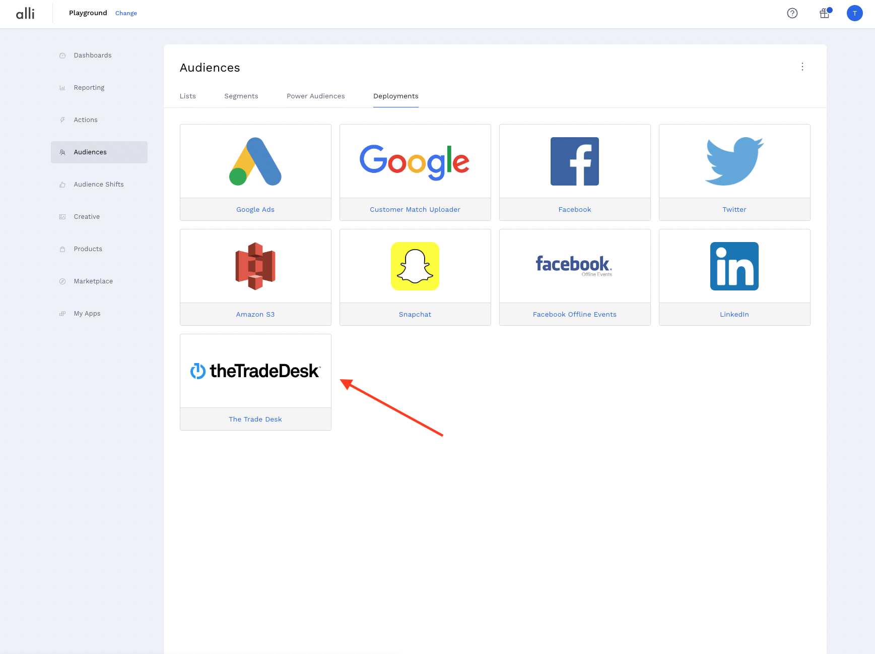 Back within your Alli Audiences Setting page, select the Trade desk button