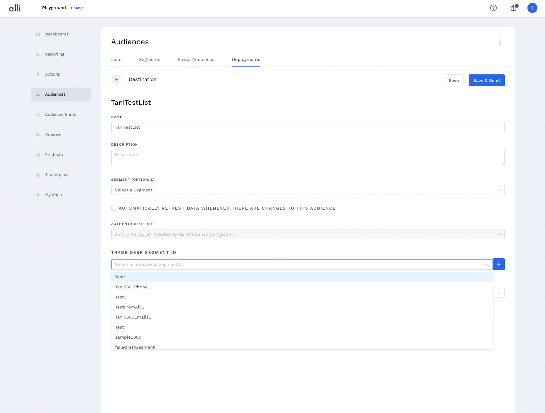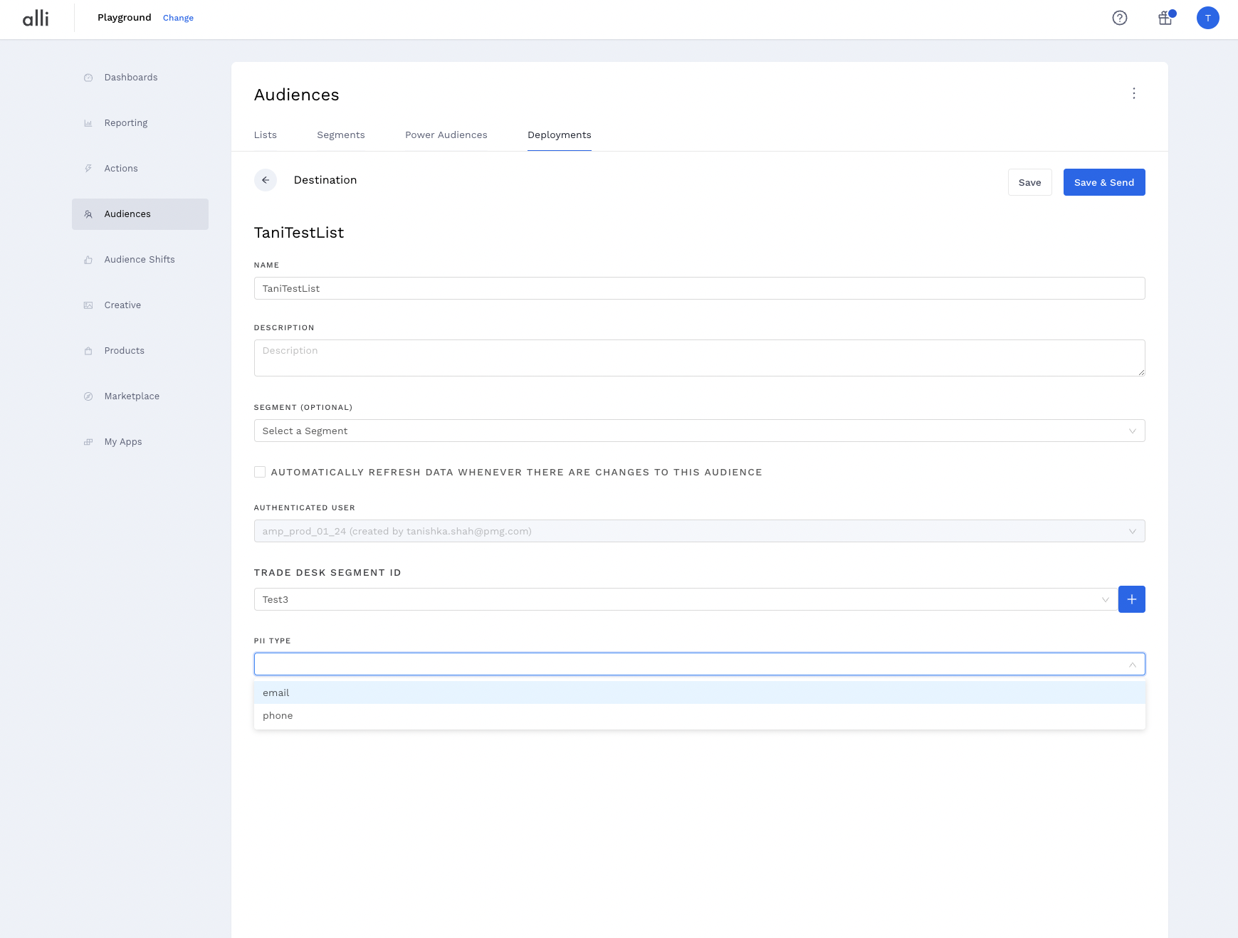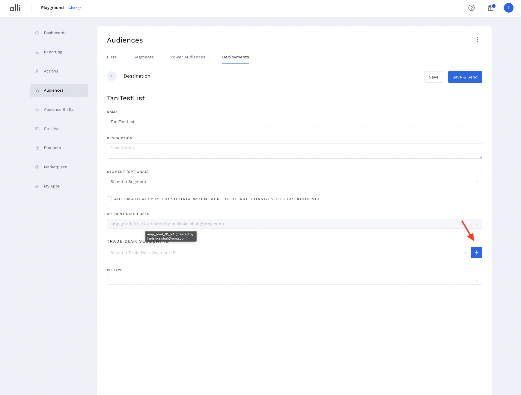 This will bring you to the deployment form in which you can select or create new trade desk segments. Select the correct PII type depending on your audience and save & send it.