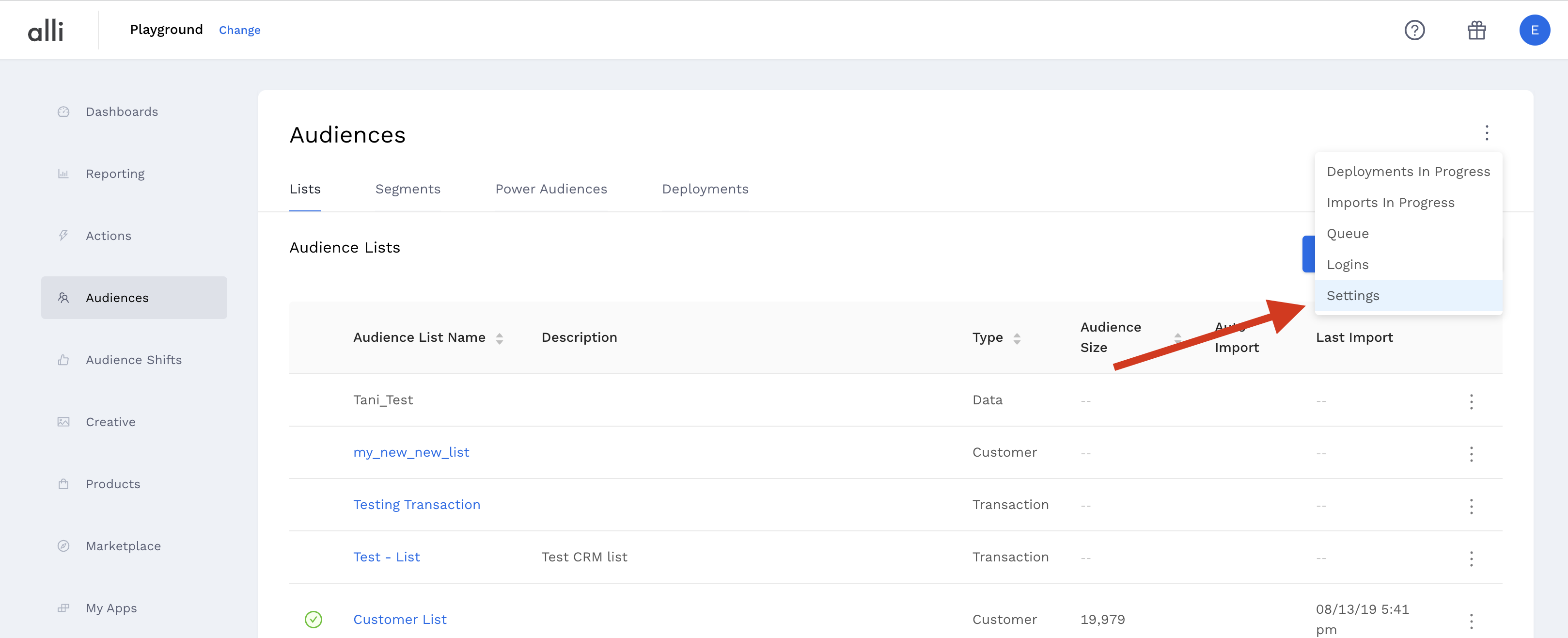 You must be a power user to see the following settings. Reach out for access here or within #alli-audiences if you are not currently a power user.