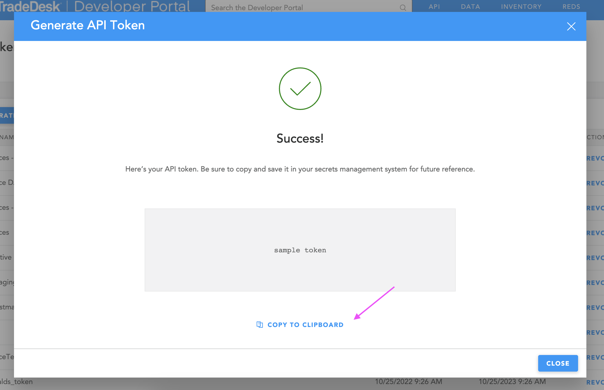 If you don’t have access to an account with API access, please create a ticket requesting “A new TTD API token to activate audiences for {ClientName}. A token will be generated for you and shared via a secure link. Once you have the token please follow the instructions below from Step 5 onwards.