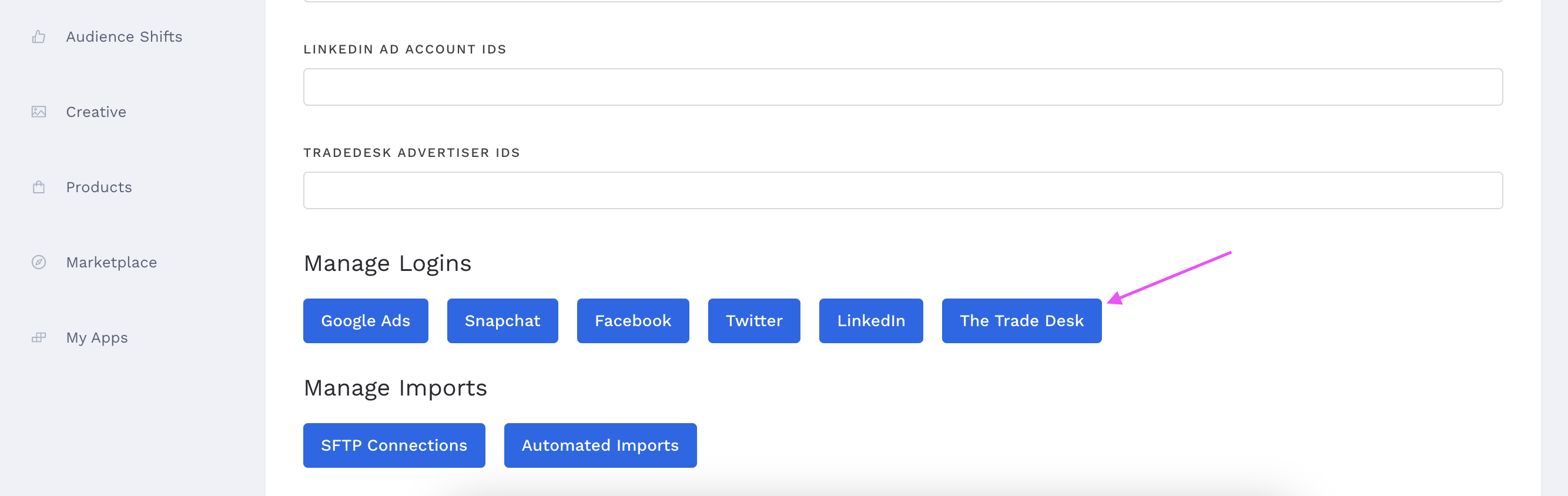 Back within your Alli Audiences Setting page, select the Trade desk button