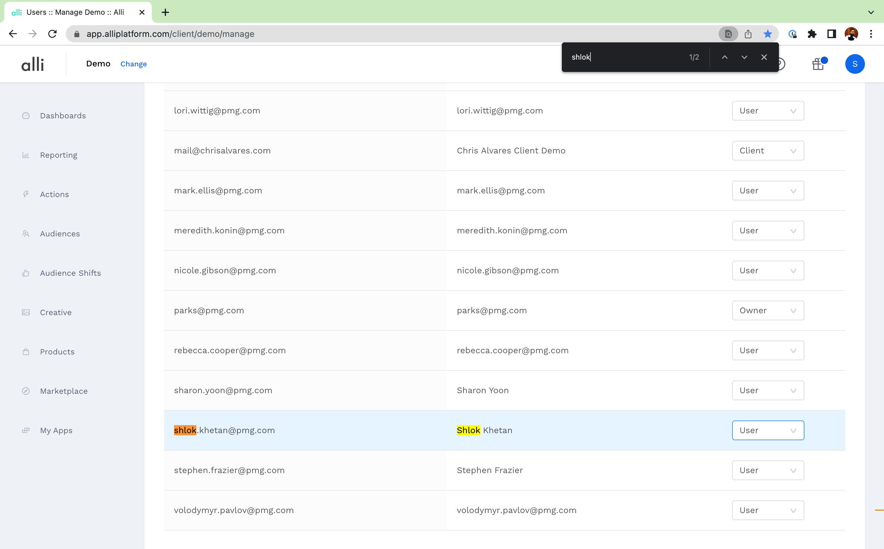 Now users can directly visit the “Client Manage” page for a client from the Alli Platform itself, but only Account Owners can actually add users to a client. While Users can still see a list of all user for a client.