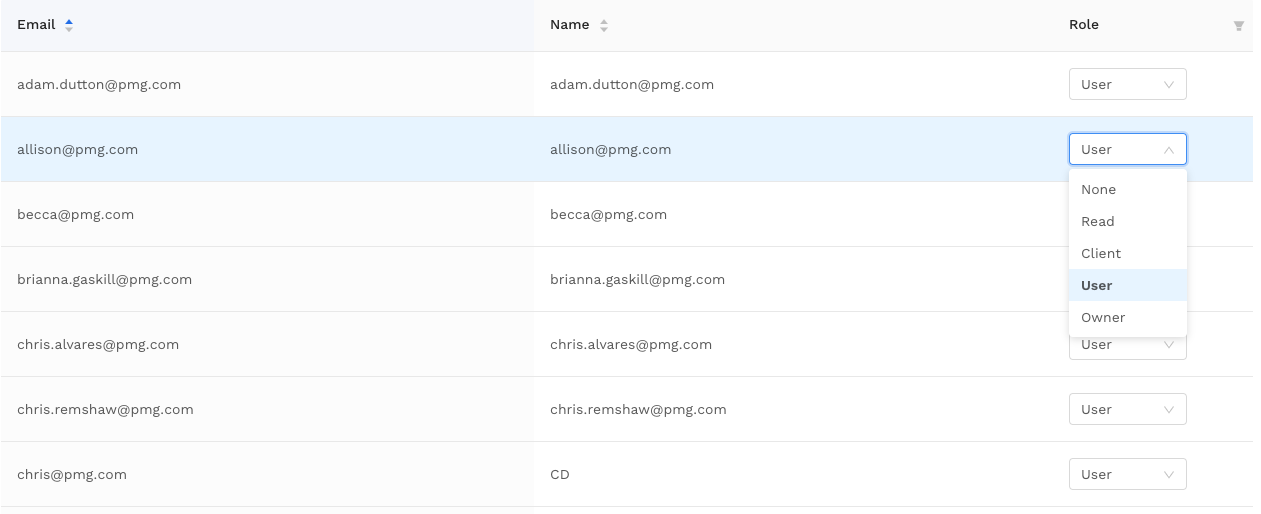 Once you are at the Manage Client Page, the first page you land on is a list of all the users with their access levels for the client