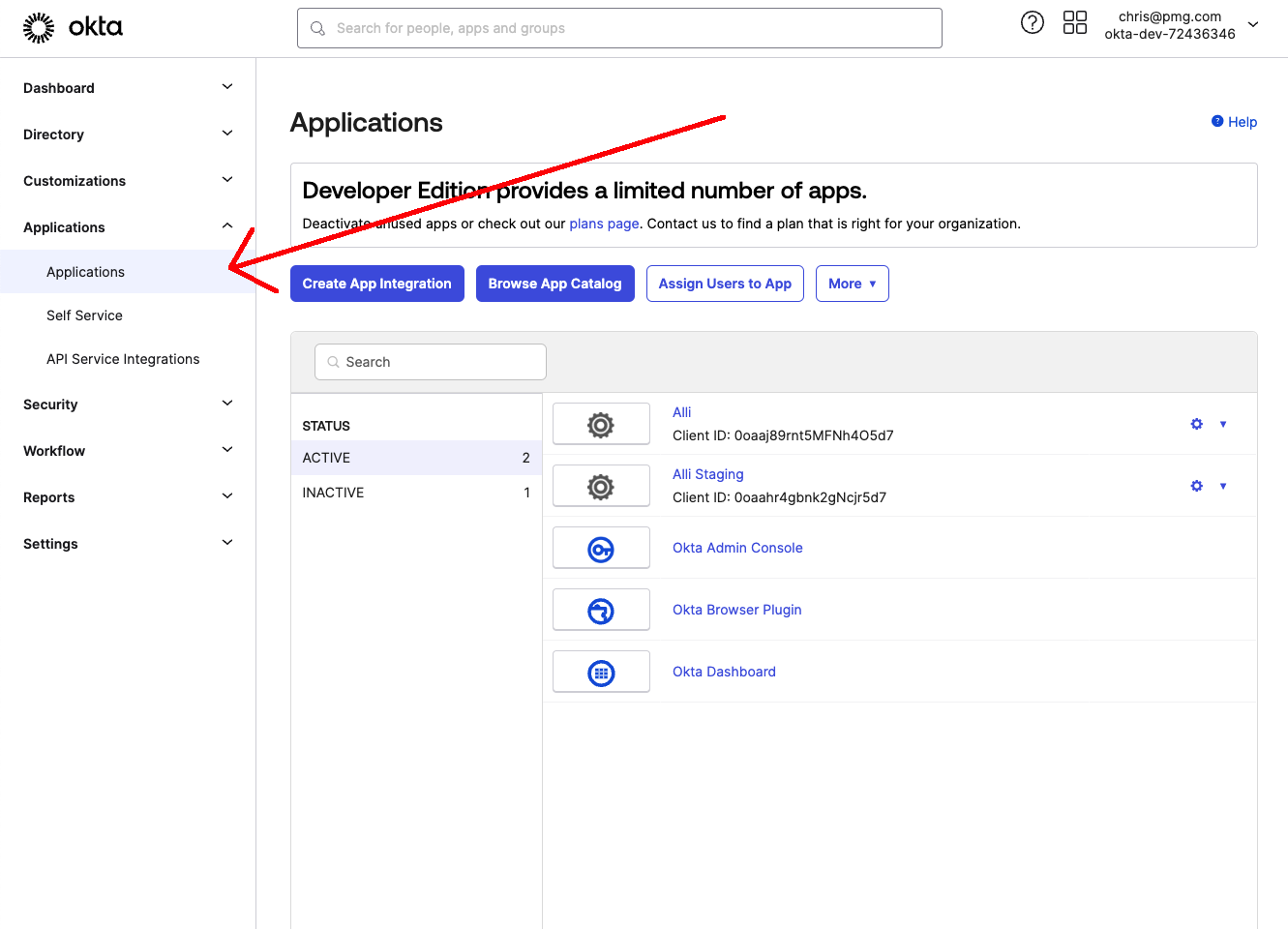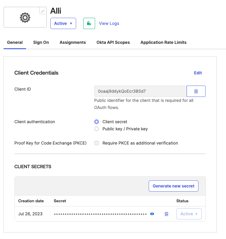 5. Send the Client ID, Okta Domain, and Client Secret to your PMG/Alli Rep