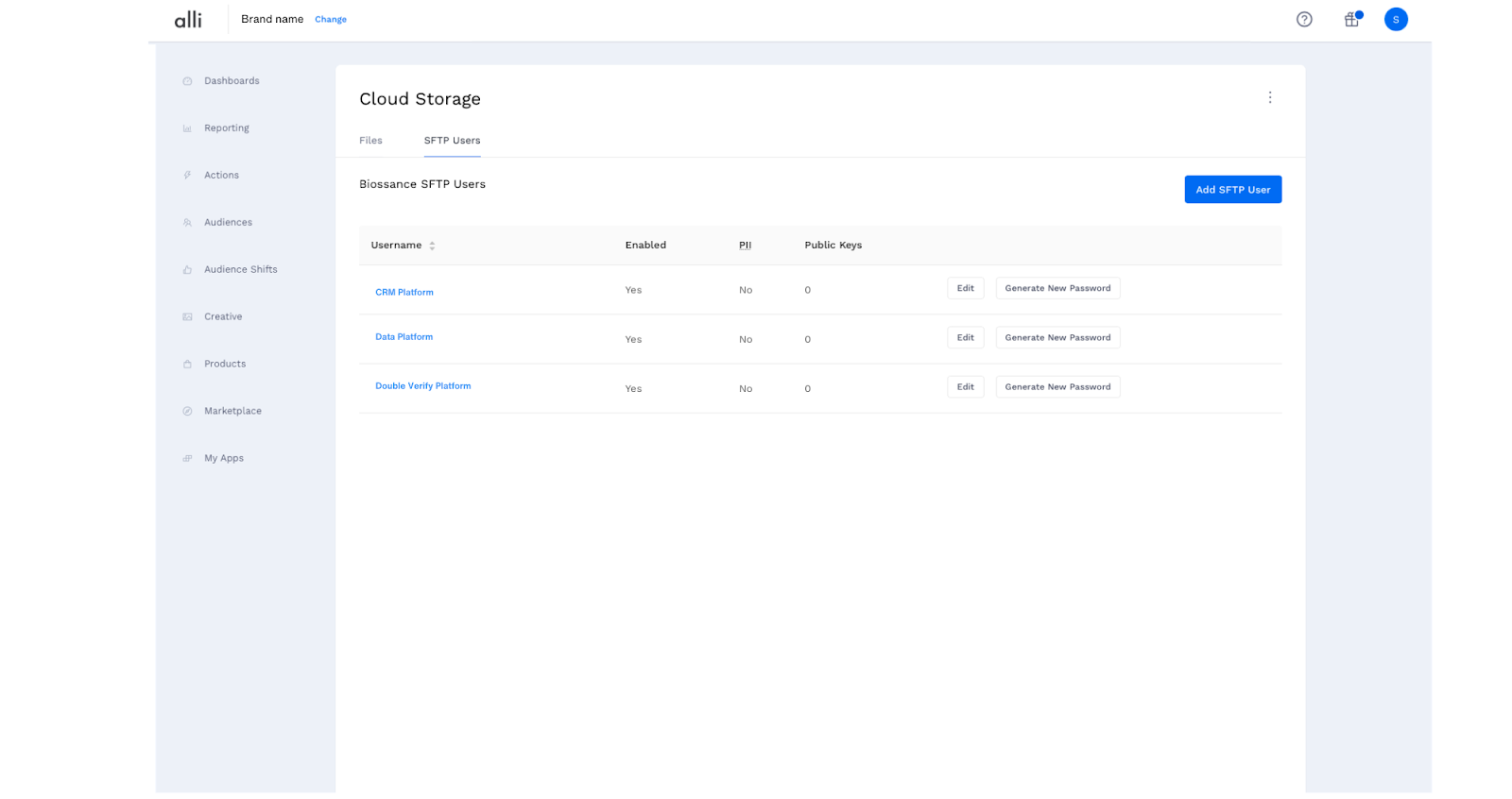 If you plan to deliver files to the SFTP using an Alli Marketplace app such as Data Delivery - Redshift SQL to SFTP or Data Delivery - BigQuery SQL to SFTP, ensure the password does not have a “$” in it because this will cause the SQL to SFTP app to fail. You can paste the password in a text editor to check it, then generate a new one if it contains a “$”.