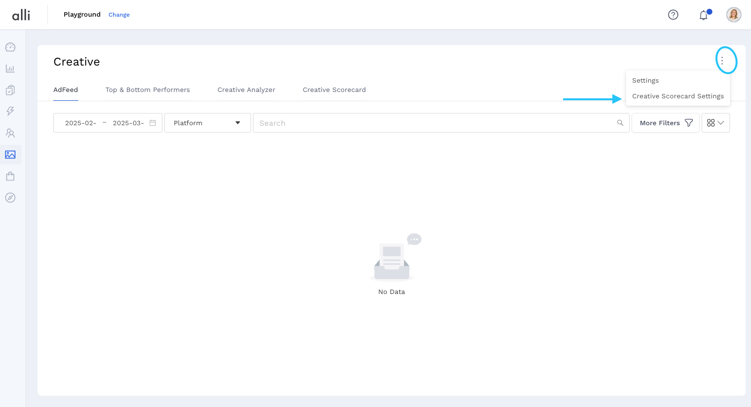 Select the additional menu up the top right, and select Creative Scorecard Settings.