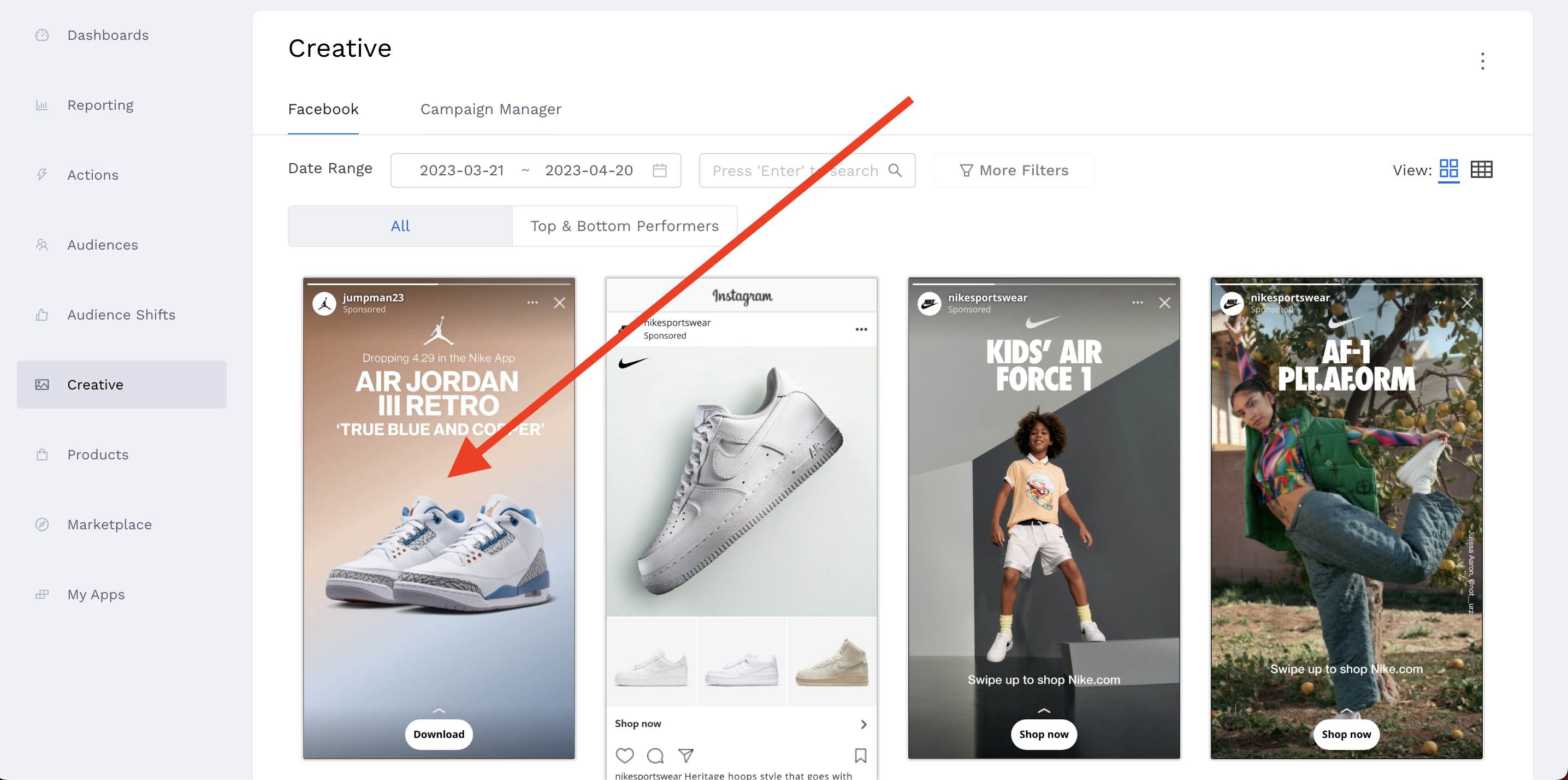 In Alli Creative Insights, clicking on any creative will lead you to that creative’s Ad Details page.