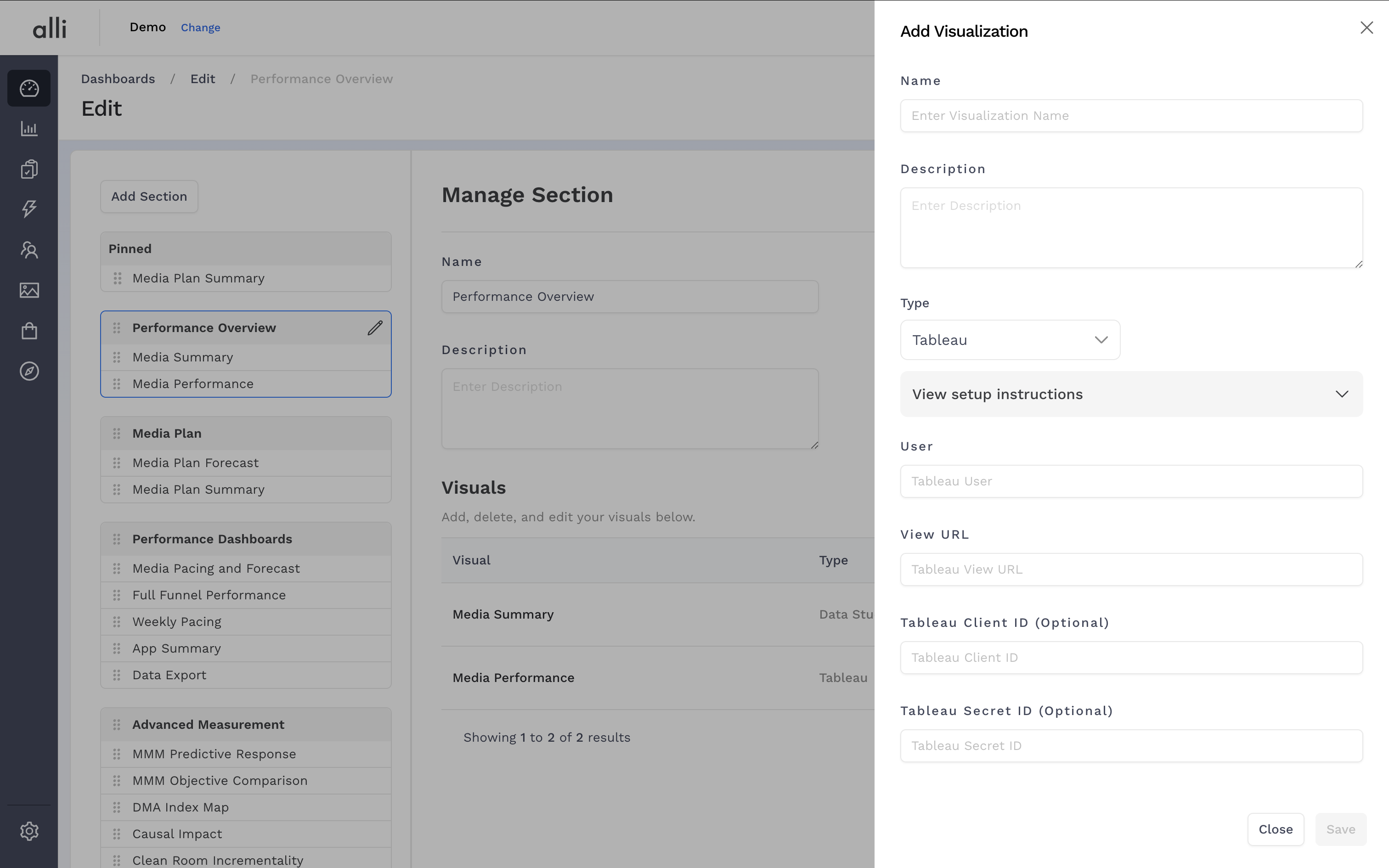 By following the above steps, you can efficiently integrate Tableau views into your dashboard, enhancing your data visualization capabilities. Remember to configure optional authentication settings if your Tableau Server requires it, and consider pinning important views for easy access.