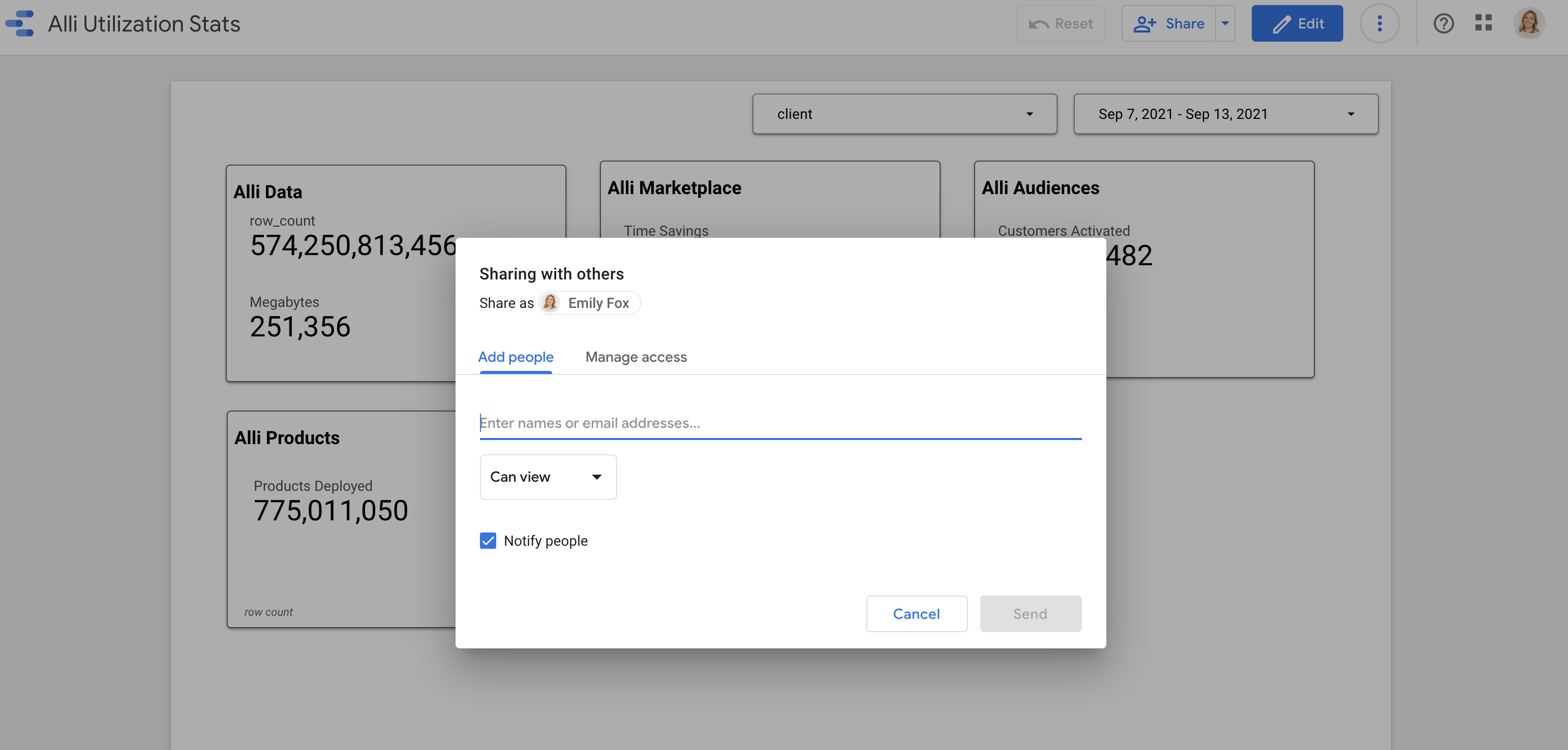 Congratulations, you have now added a Google Data Studio dashboard to Alli and shared out a link to it!