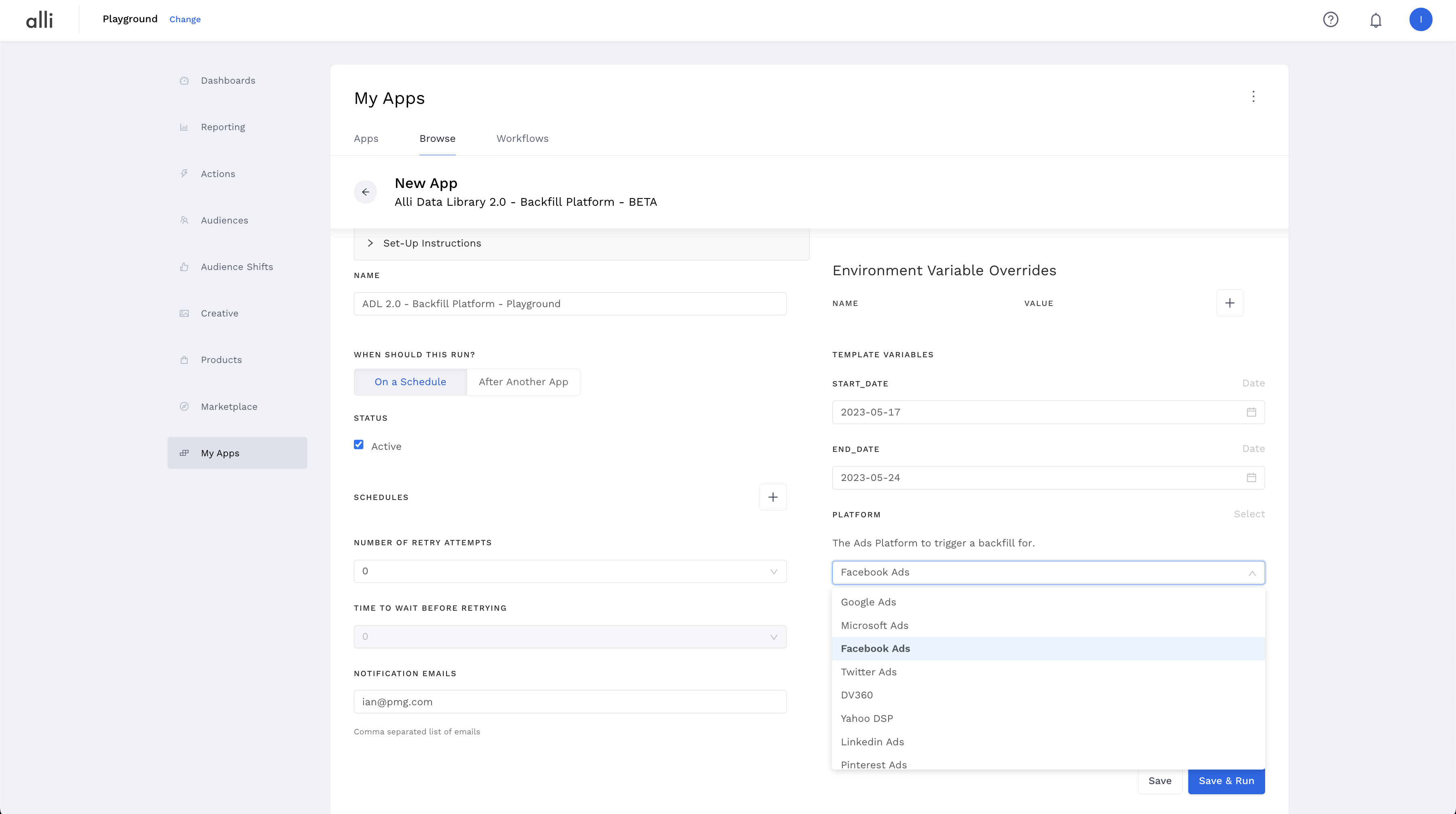 1.) Go back to Alli Marketplace and search for the ADL 2.0 - Backfill Platform app under My Apps → Browse.