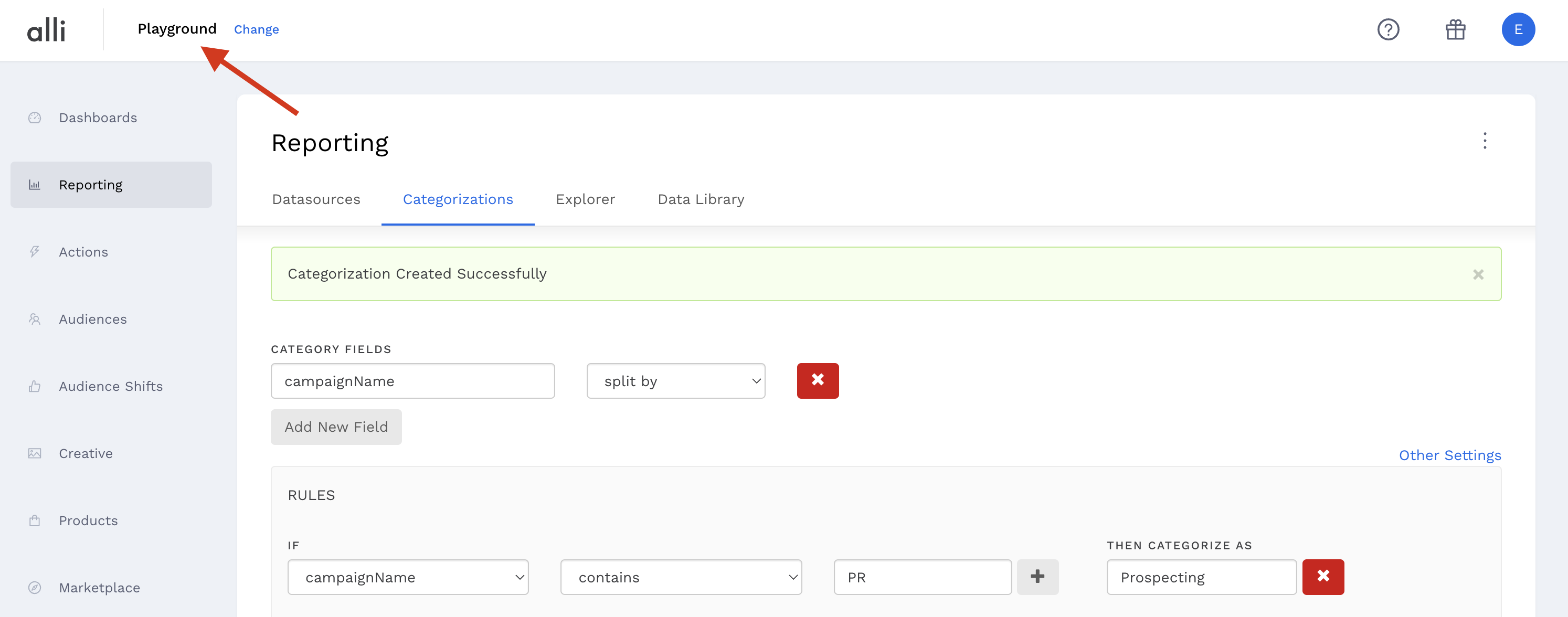 To setup a categorization, select the field next to the category field: