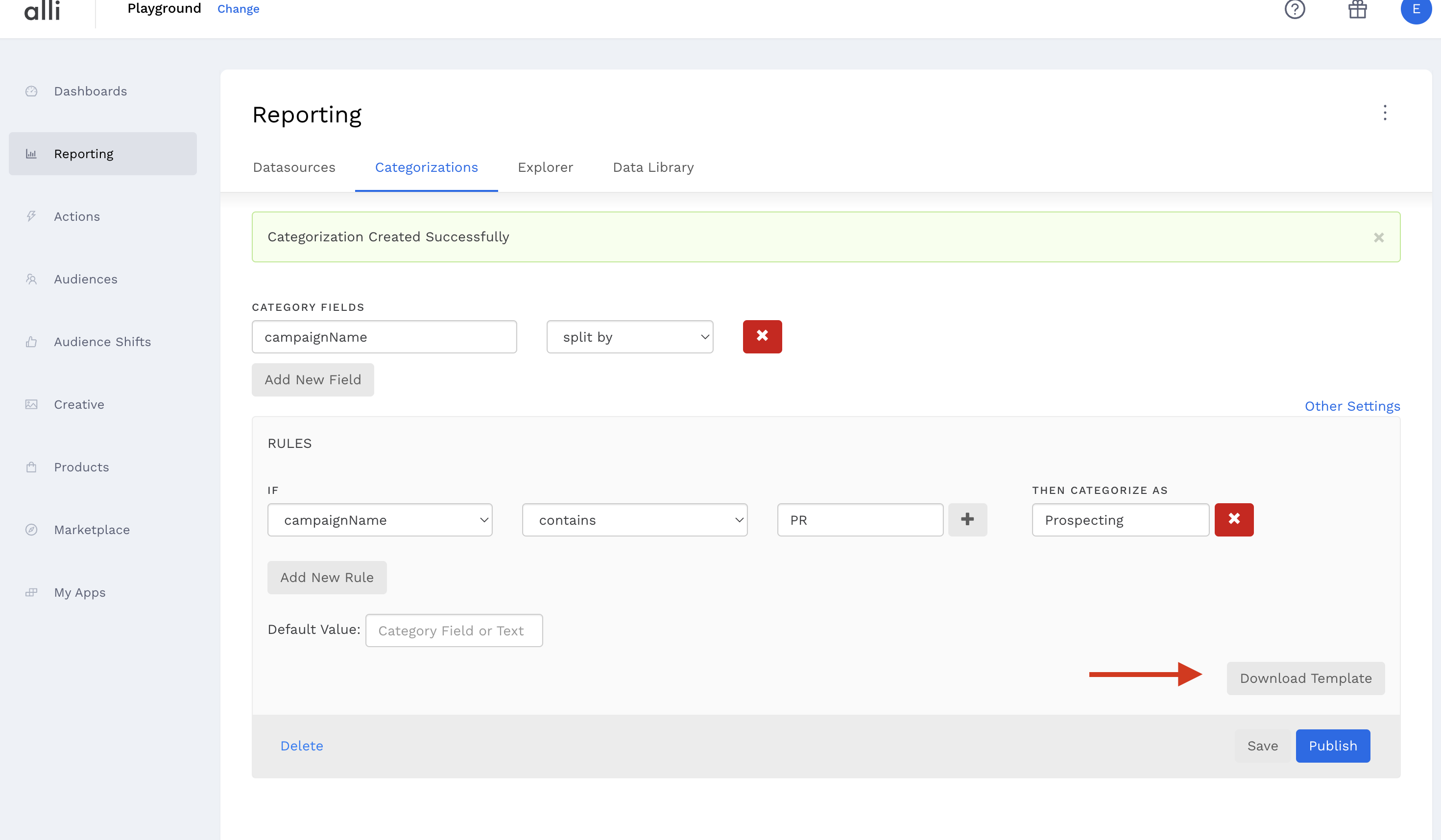 To publish a categorization, hit the Publish button. It will then be available to use in SQL.