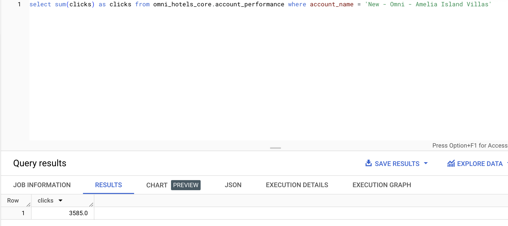 Example: Summing clicks for the Amelia Island Villas account for Omni Hotels