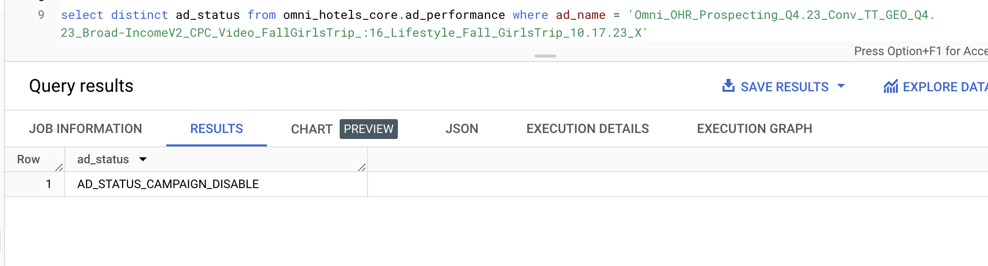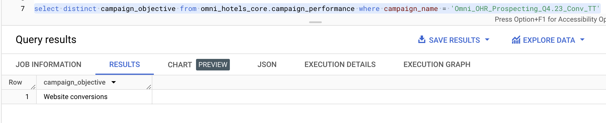 Example: Querying the campaign objective for this Omni Hotels campaign