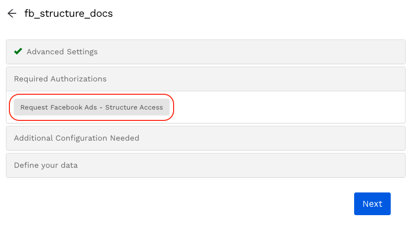 Once you have an account with Business Manager access, click the Request Facebook Ads - Structure Access button.