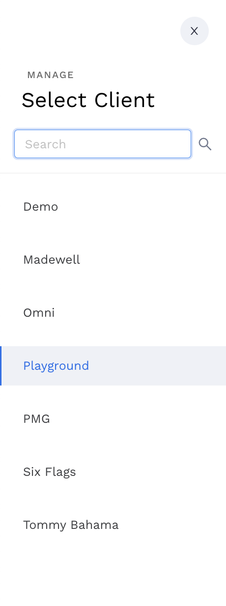 Navigate to the left-hand side of your screen. To the right of the Alli logo, you will see the current client name and the option to change and select a different client.