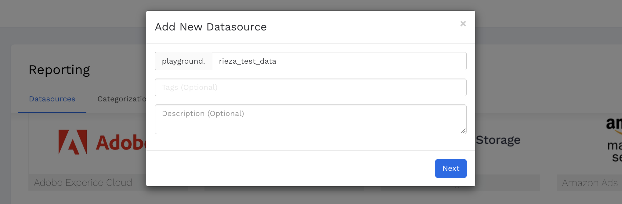 You also have the ability to add optional tags and an optional description. These are helpful in differentiating and searching for datasources within the same customer.