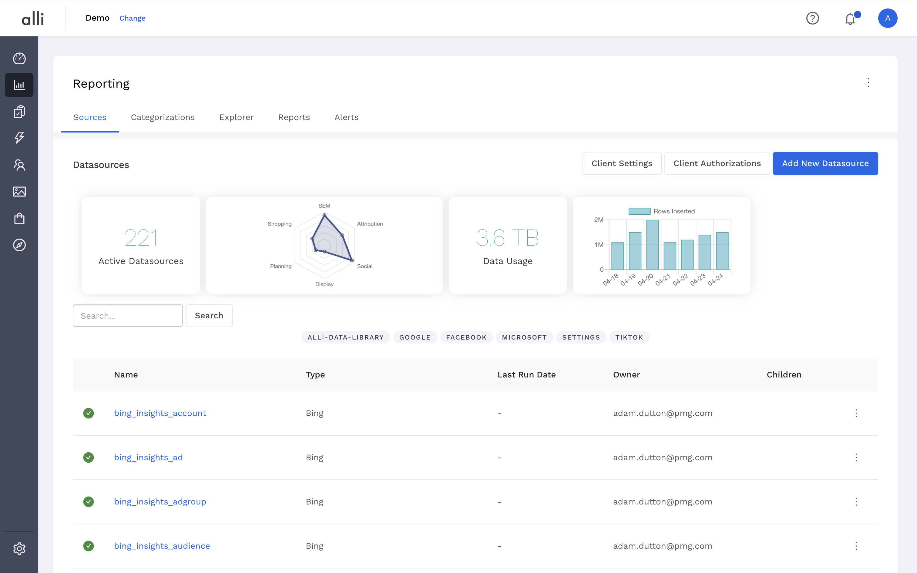 This documentation will teach you how to ingest your data sets as well as navigate all the features of Alli Data for each of your clients.