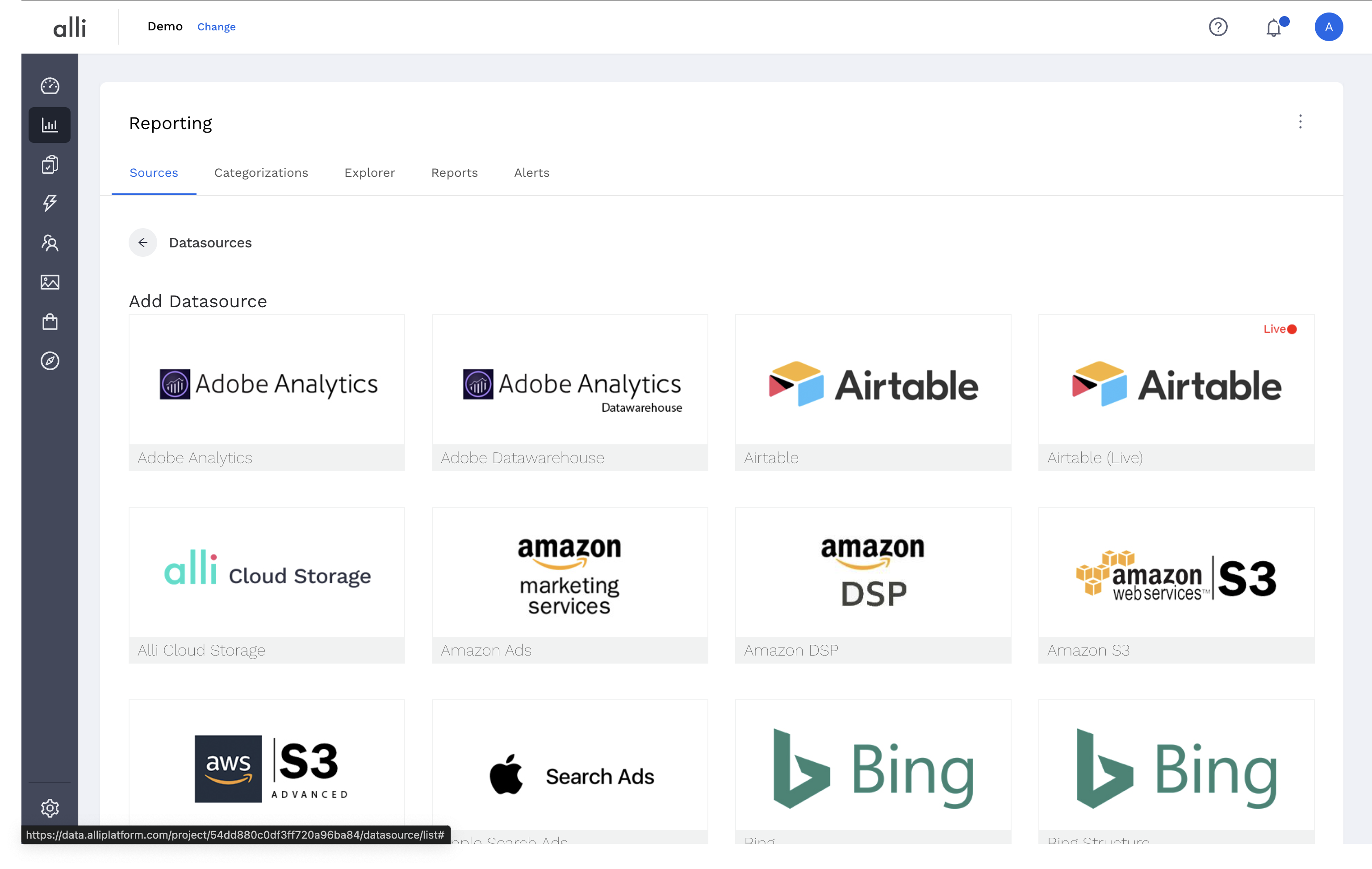 To begin using Alli Data, you must first either find an existing datasource that was previously created under your customer or create your own datasource.