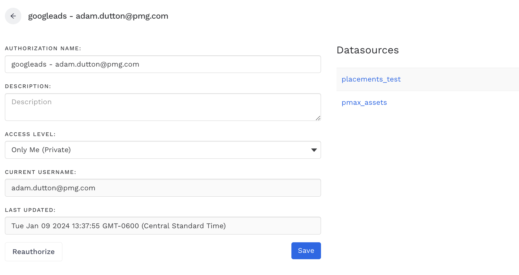 Why is my datasource not working after I refreshed one of my authorizations?