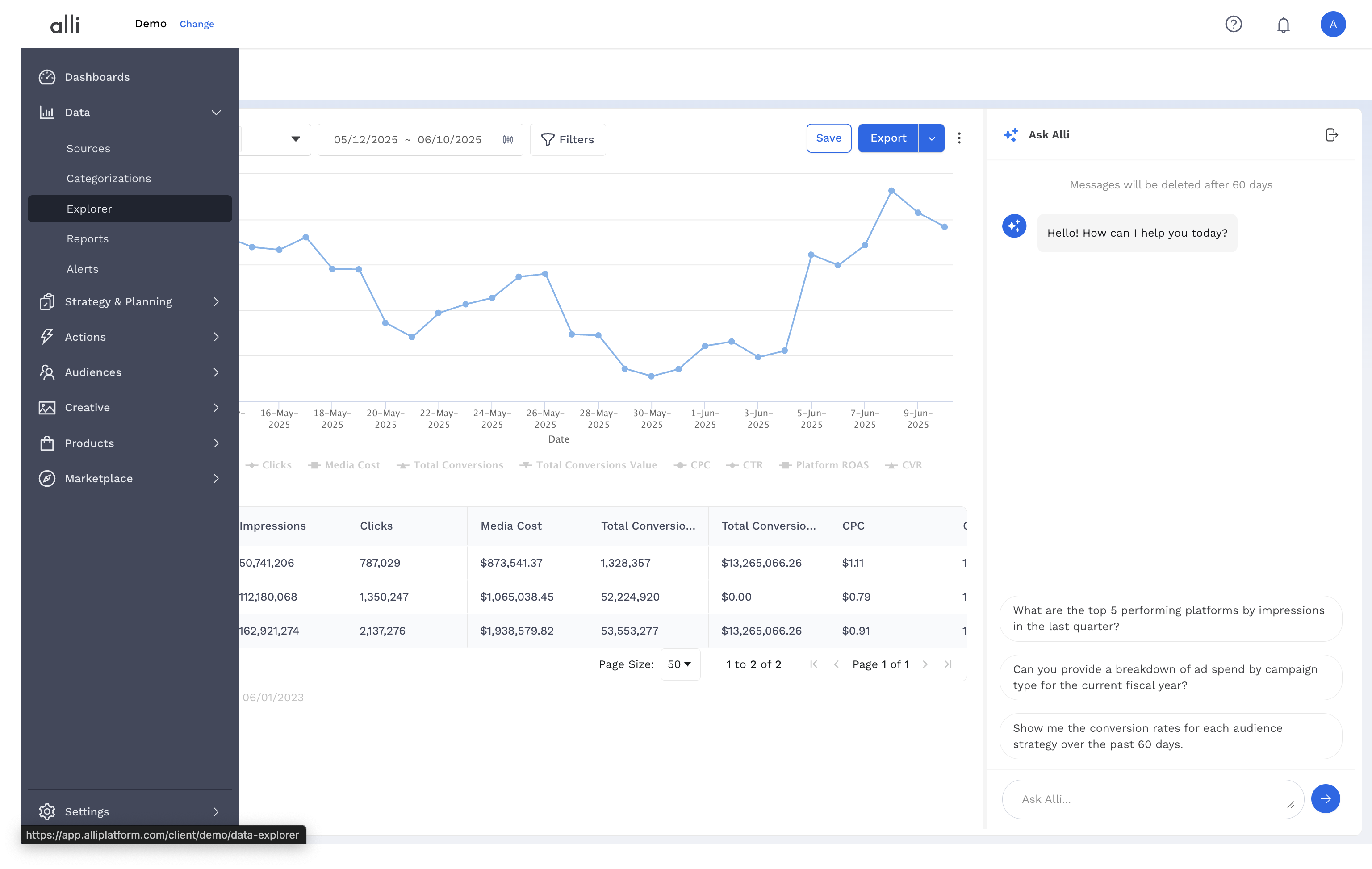 Ask Alli will generate the chart and table instantly — no manual setup required.
