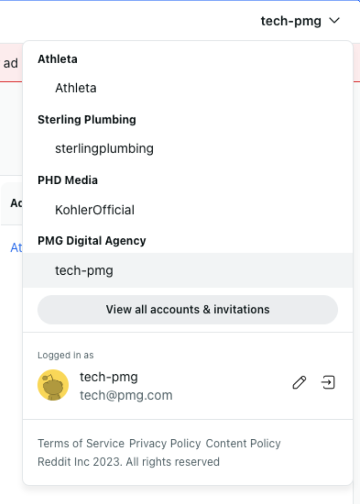 To be able to utilize the Reddit datasources, the email you use to authenticate will need Reddit Ads API access granted from a Reddit representative. Reach out to your social lead if you do not have a Reddit contact.