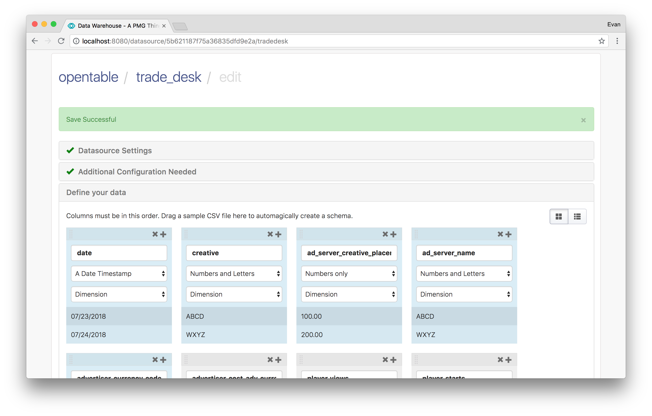 You can download your report as a .csv file and drop it on to the Manual picker to auto-generate the report's columns. You should still take a minute to verify the auto-generated schema, as misconfigured dimensions and metrics can cause errors in the data and metric inflation. If you need help, here is a guide.