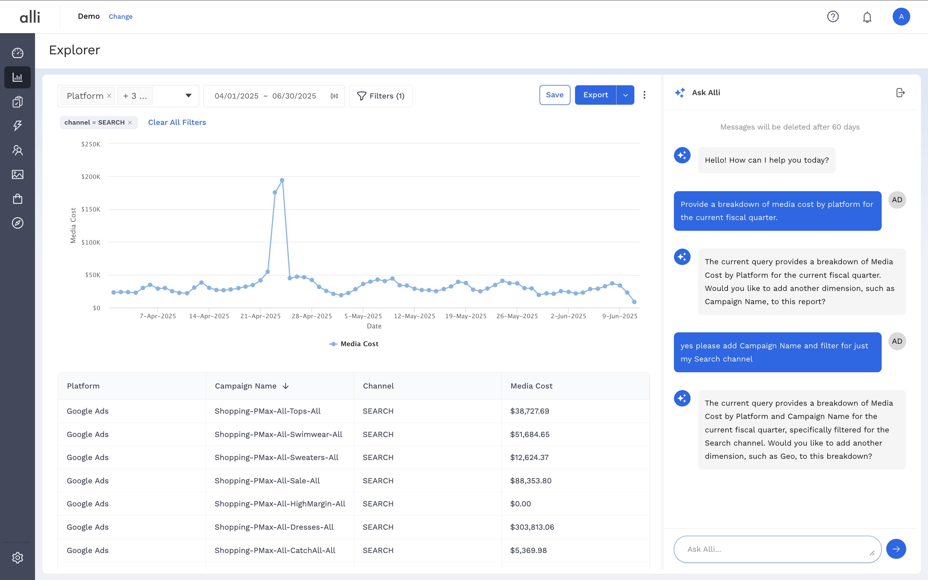Ask Alli is your built-in assistant for exploring data in plain language. Whether you're answering quick questions, building campaign summaries, or analyzing performance across dimensions, Ask Alli makes it faster to get to insights — no filters, pivot tables, or dashboards required.