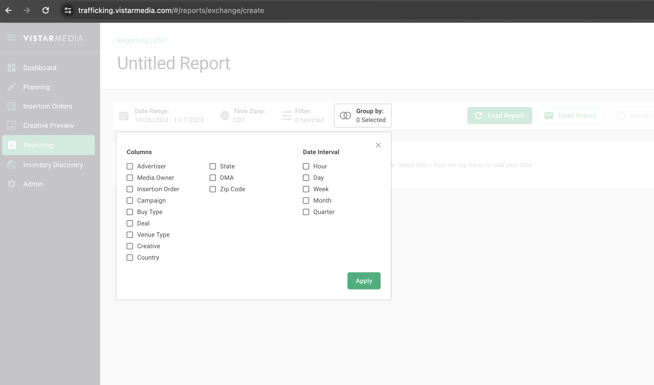 Because the report is created and managed within the Vistar Media platform, there is no need to select columns in Alli.