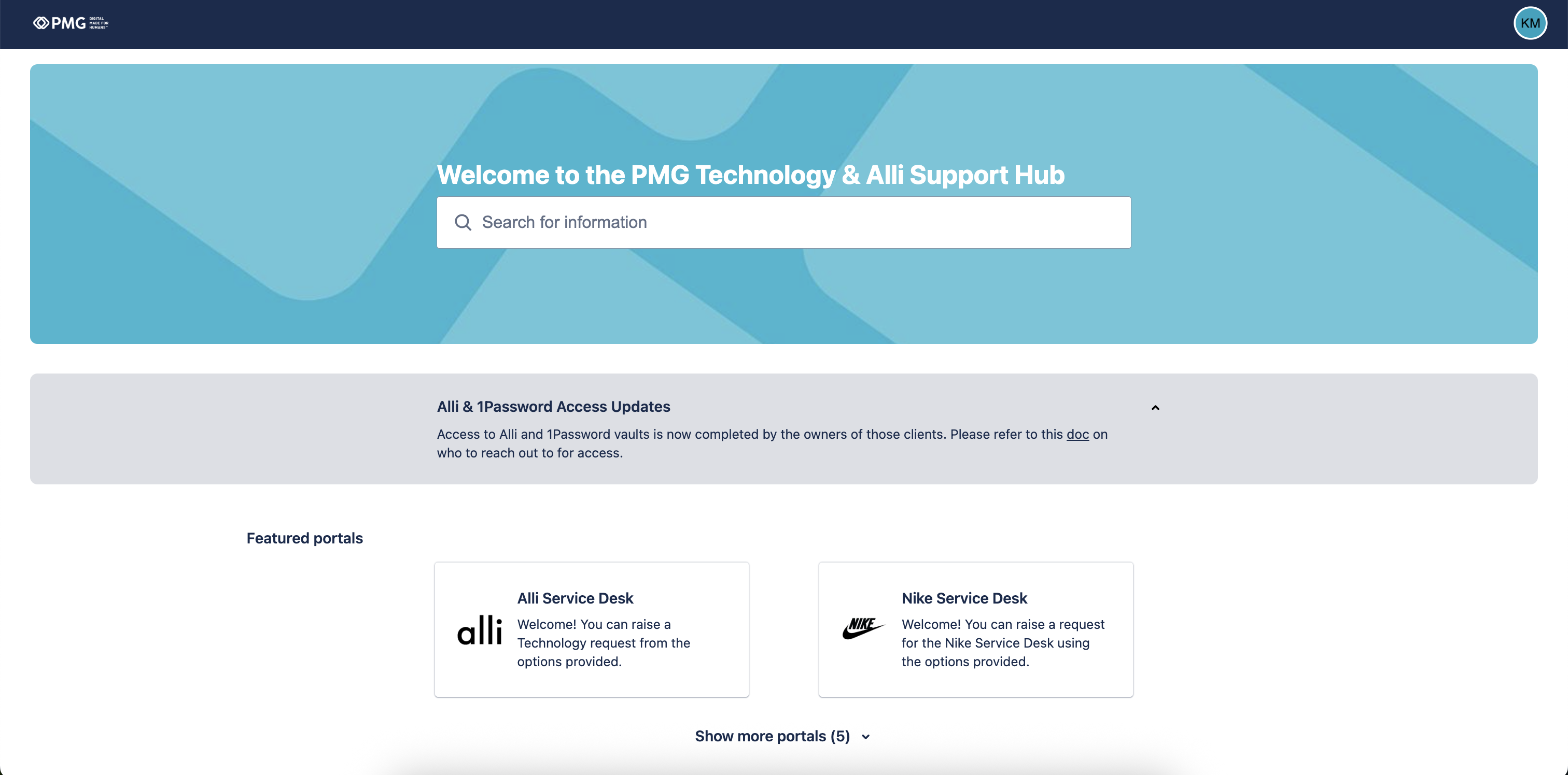 Point your browser to the Alli Service Desk portals. NOTE: Each organization has it’s own portal; PMG, Nike, Future SaaS Organization(s)…. You will only have access to your particular organization’s portal.