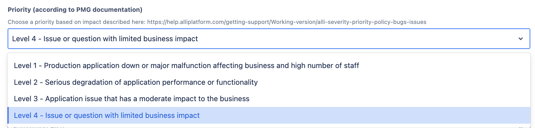 Priority - You will need to choose a priority, in order to bring the proper attention to your request. There are priorities for internal Engineering use, so the priorities you’ll focus on are those marked P1 - P4. Priority here does not mean urgency. It means, “what is the impact to PMG, the client, your own workflow”. Included is a list to help you decide which to classify.