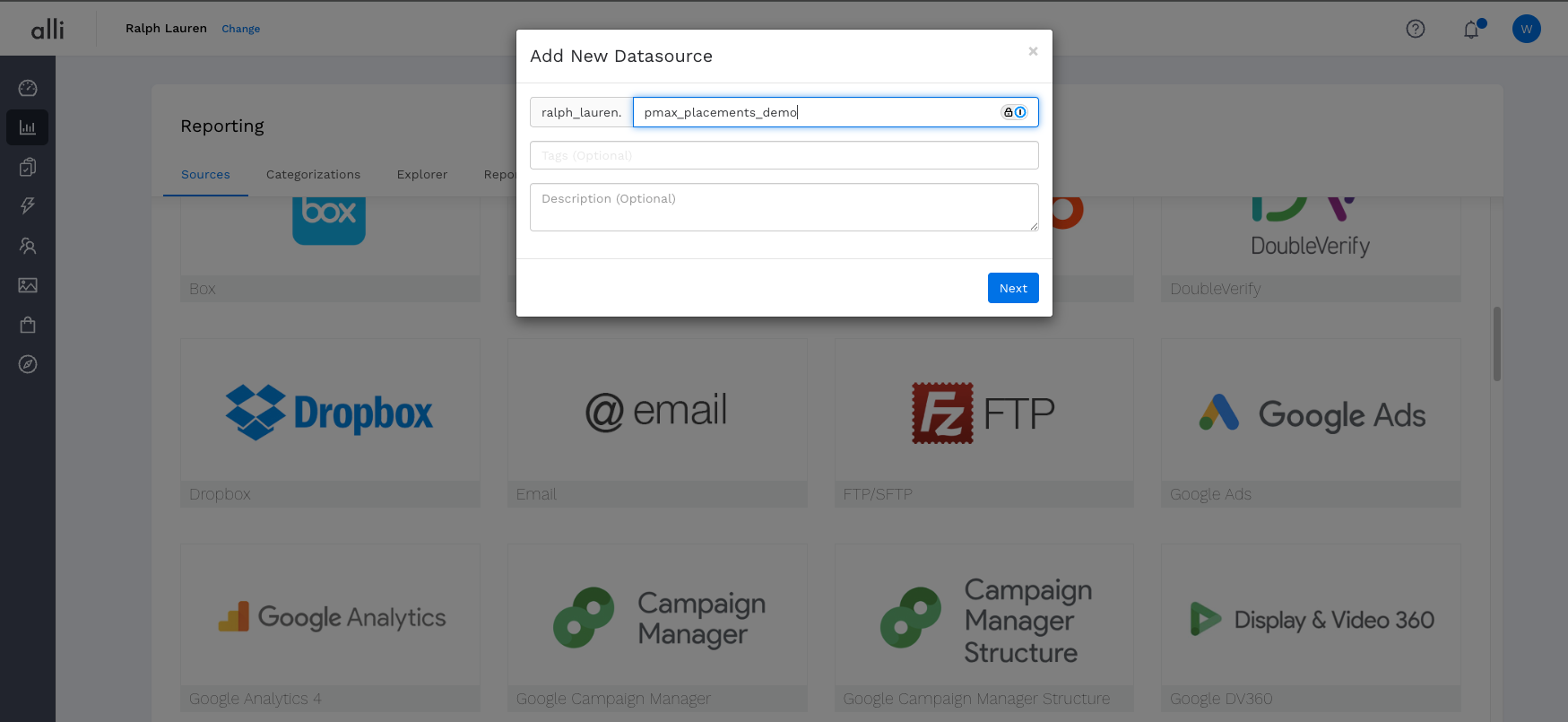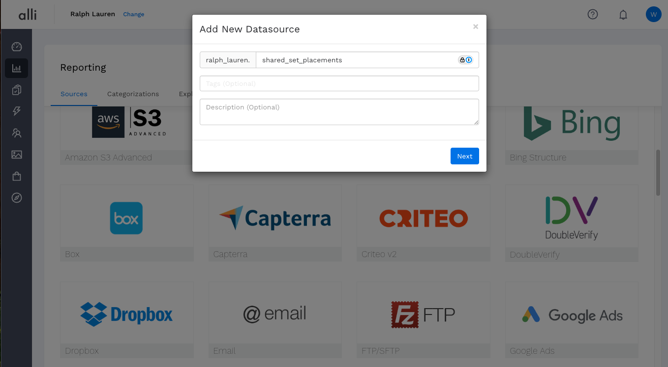 5a. Set up Alli Datasource to pull URL Placements