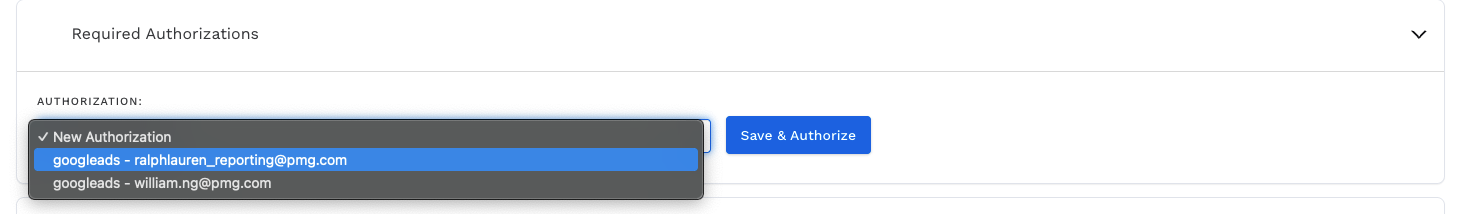 Give your action a name, and select an authenticated account that has access to the Google Ads account that you are trying to update the Shared Set. Click Next
