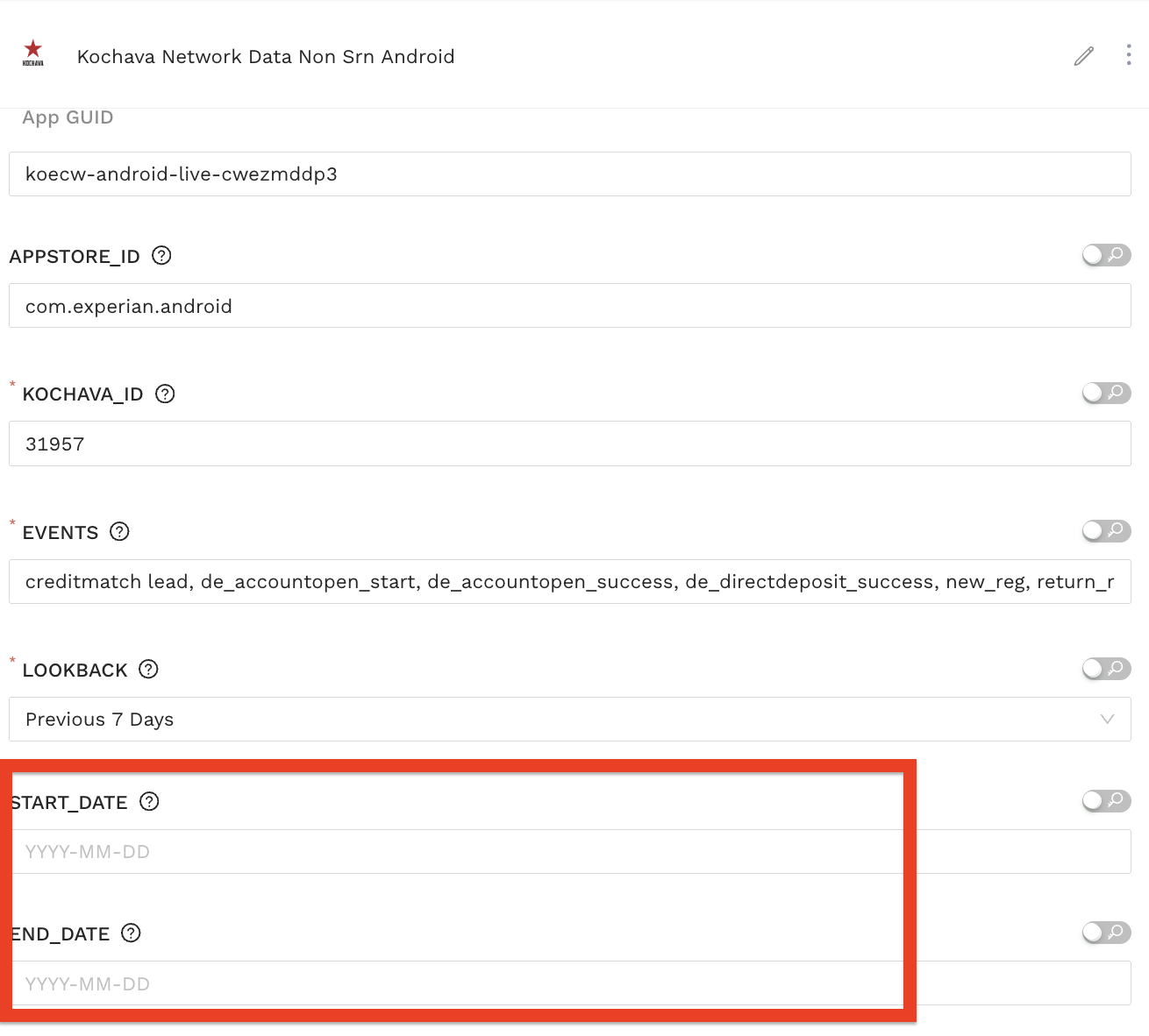 start_dateandend_dateinYYYY-MM-DDformat.Or leave dates blank to just pull for a set lookback period (the automated default).