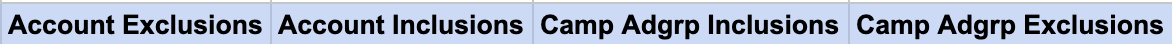 The input of these ‘Inclusion’ or ‘Exclusion' columns help power the matching logic, and allow you to filter through all of your campaign names so that your assets will only apply to a subset of them.